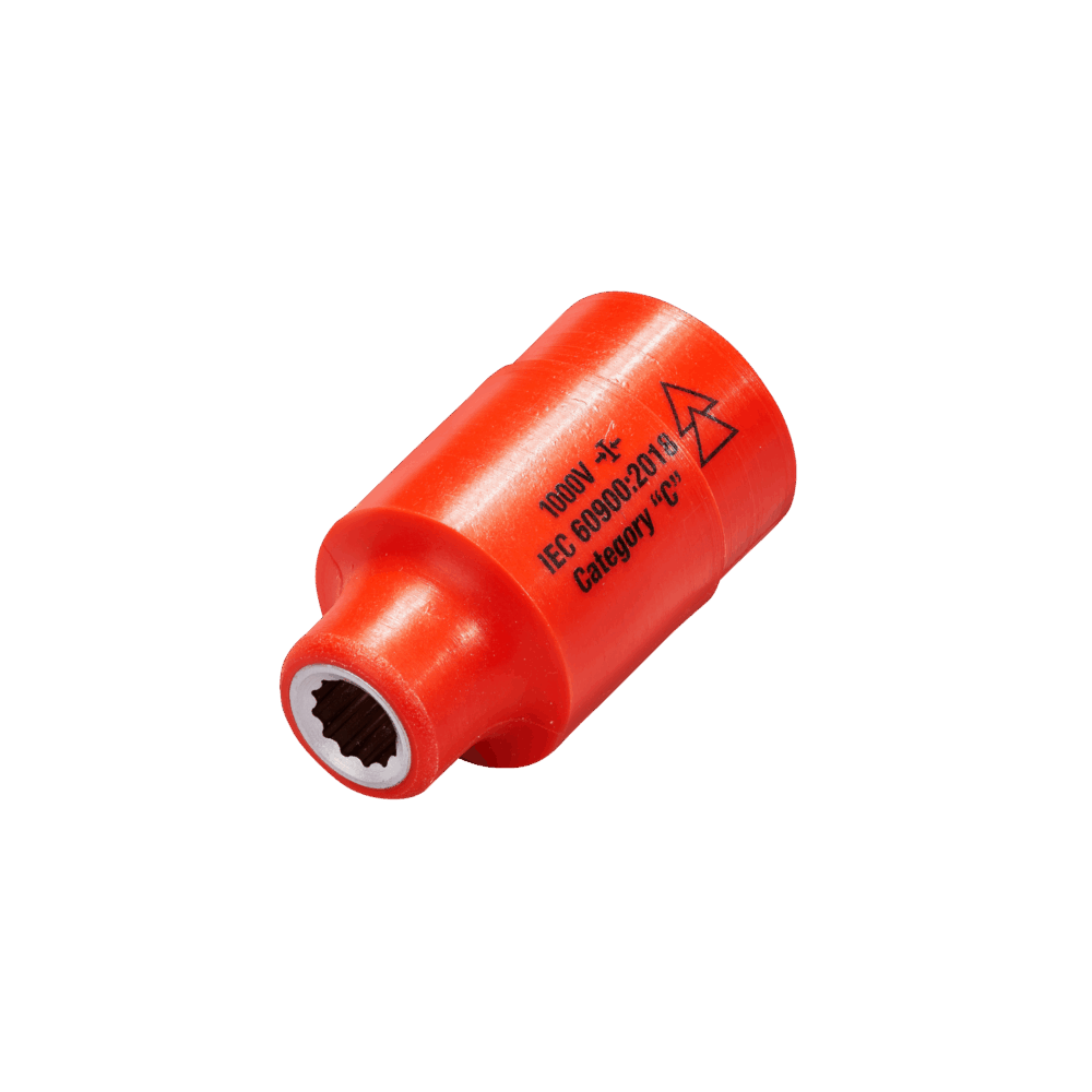 1,000v Insulated 1/2″ Drive Impact Socket. Made from injection molded Nylon Thermoplastic, which exceeds the requirements of IEC 60900, the industry standard for live line working. In addition, this tool meets the requirements of Category ‘C’, which requires it to perform at extreme temperatures of -40°C to +70°C, making it unique in this category. These insulated tools are the toughest in the market, being virtually indestructible. With a lifetime warranty on the tool and insulation.